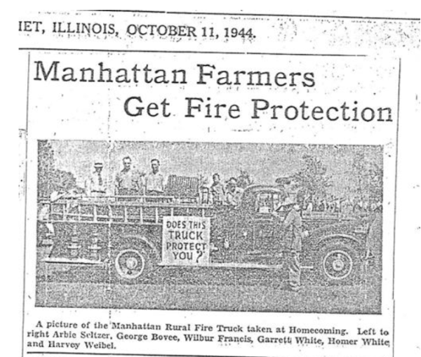 1942-1944: Manhattan Rural Fire Protection Association formed; purchased a fire truck for $4,835 from Central Fire Truck Corporation